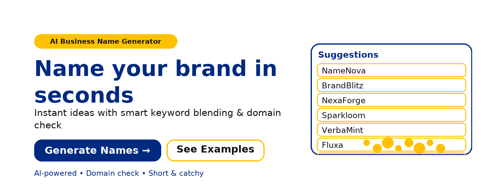 It instantly suggests brandable business names using AI and checks if matching domains are available in real time.
