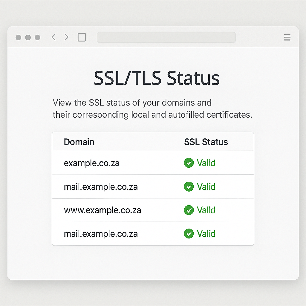 • In cPanel, open SSL/TLS Status (or Let’s Encrypt/AutoSSL if available).