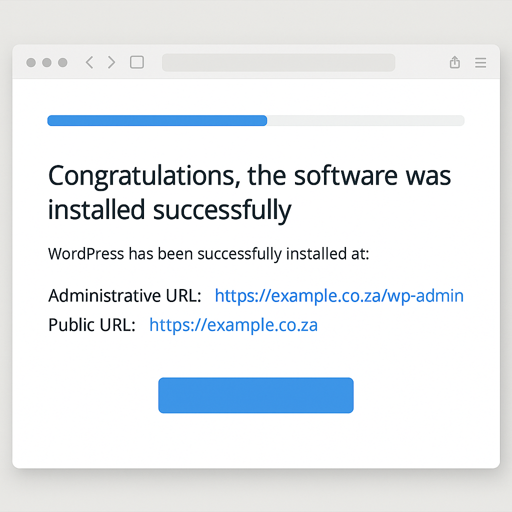 • Administrative URL (e.g., https://yourdomain.co.za/wp-admin)