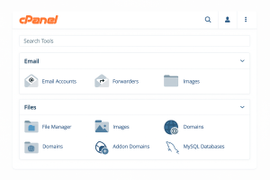 Use the Search to find tools quickly (e.g., Email, File Manager, Domains).